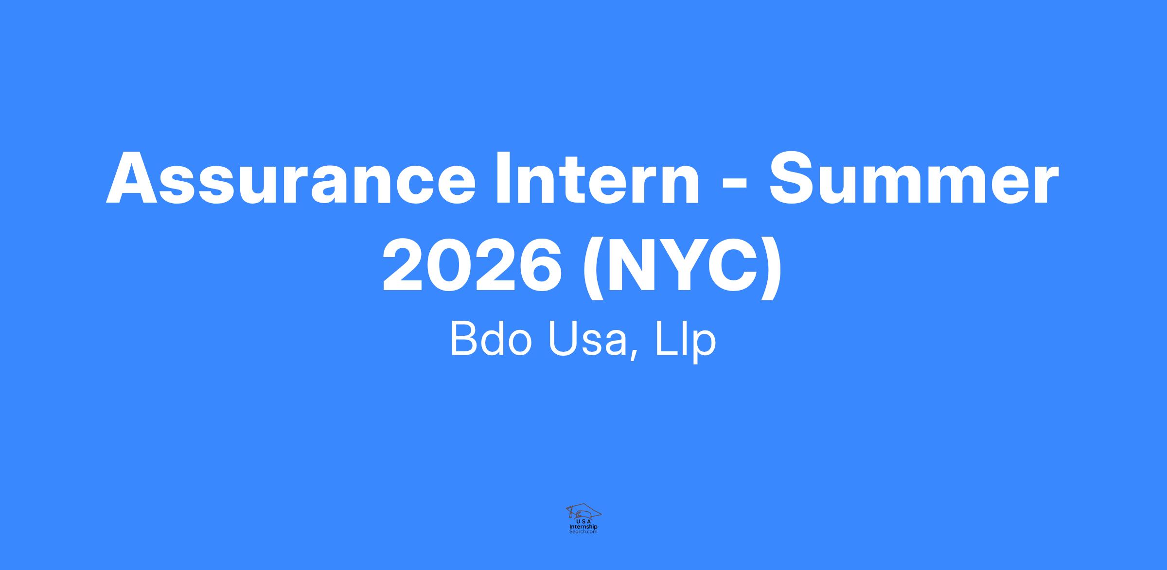 BDO is a place for energetic self-starters who can think and act like entrepreneurs. As an Intern in our Assurance practice, you will begin to utilize your educational background as well as your organizational skills as you serve the firm's dynamic client base. You will assist in problem solving and fact-finding, working side-by-side with more experienced team members who can provide you with direction, coaching and learning opportunities. This opportunity will allow you to gain a unique hands-on perspective on our firm’s practices and people, as well as beginning to forge the critical relationships that will help maximize your chance for success in your career.