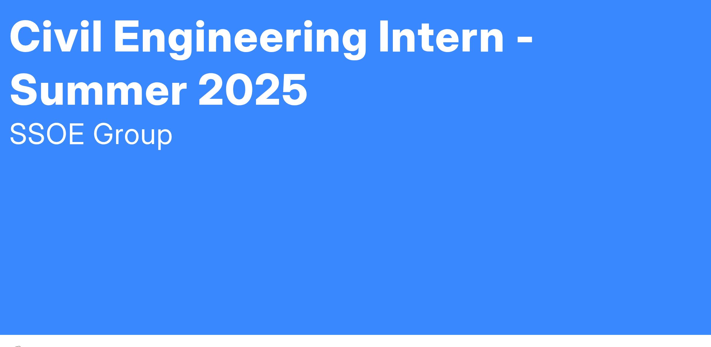 SSOE is seeking a Civil Engineering Intern - Facilities for Summer 2025. This position is a hybrid role with a schedule of Mon/Fri remote and Tues/Wed/Thurs in the office onsite at our Birmingham Office.