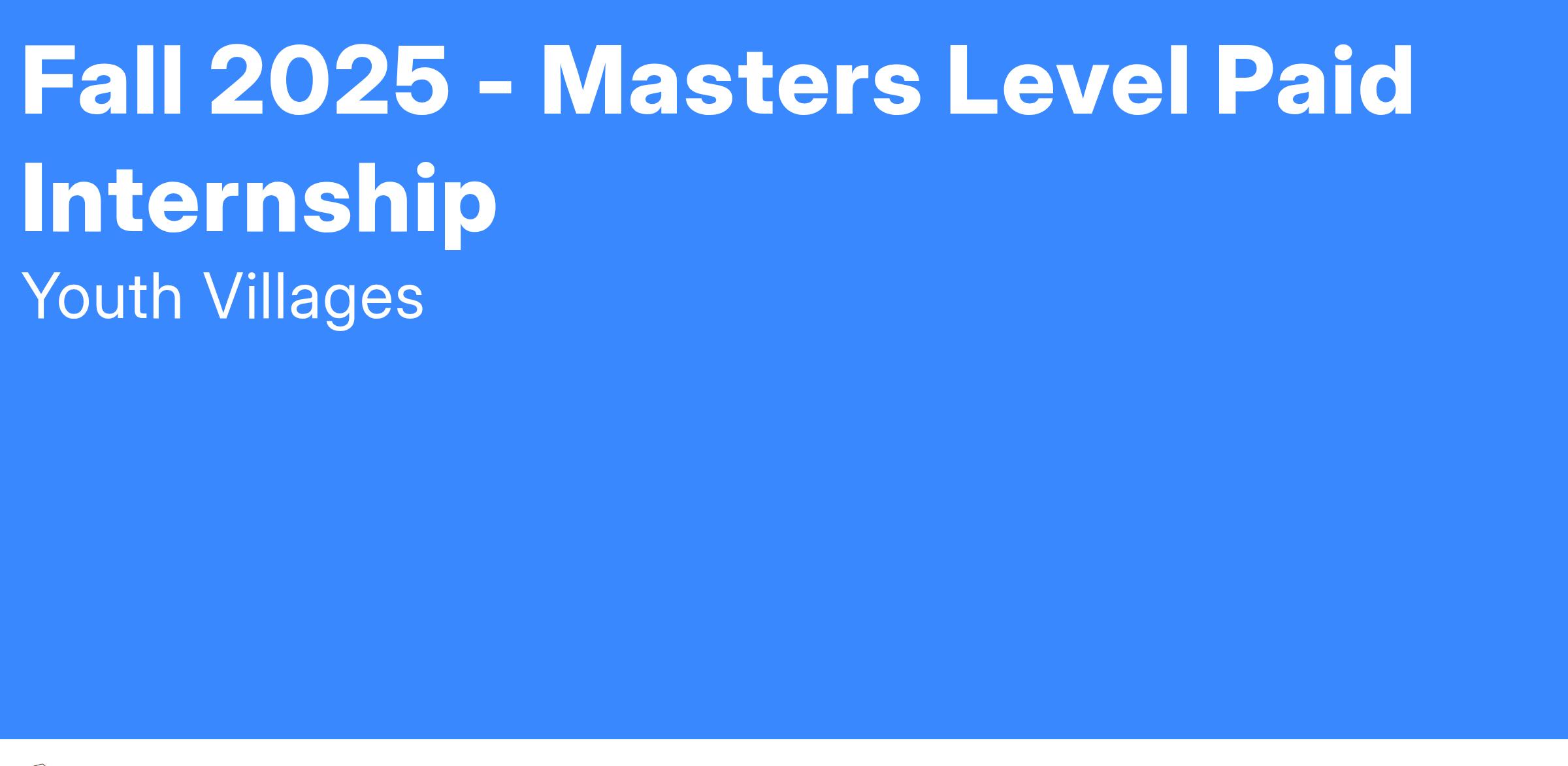 Experience the kind of internship that will change lives... the lives of troubled youth, their families, and your own. Youth Villages' commitment to helping troubled children and their families find success spans more than 30 years and includes a comprehensive array of programs and services including: