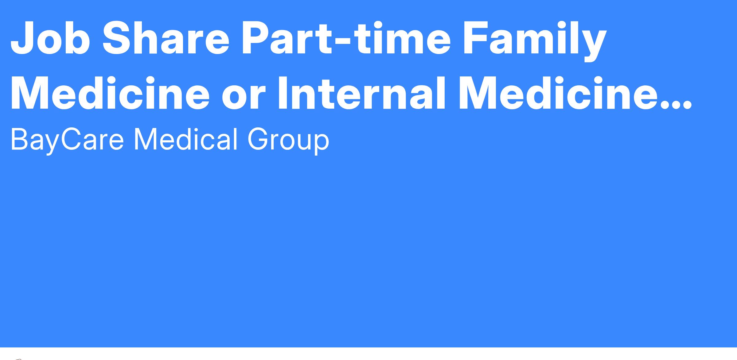 BayCare Medical Group is a physician-led medical group seeking an experienced board certified/board eligible Family Medicine or Internal Medicine physician to join our well-established practice in Tampa, Florida as a job share.